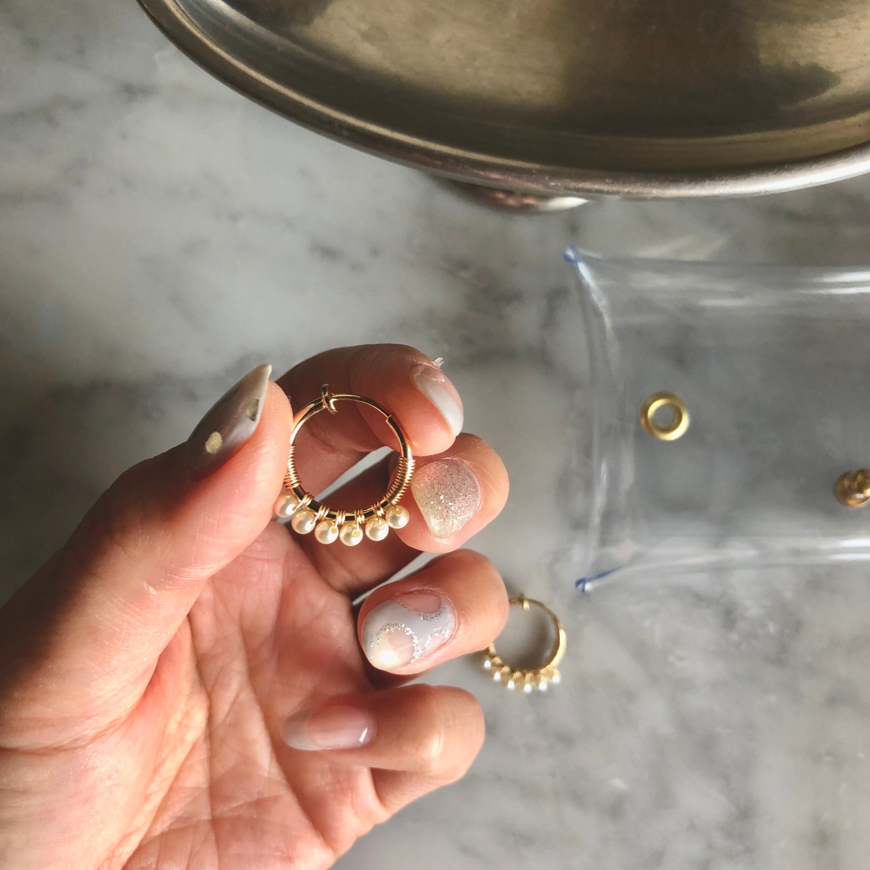 スワロフスキーパールのフープイヤリング
