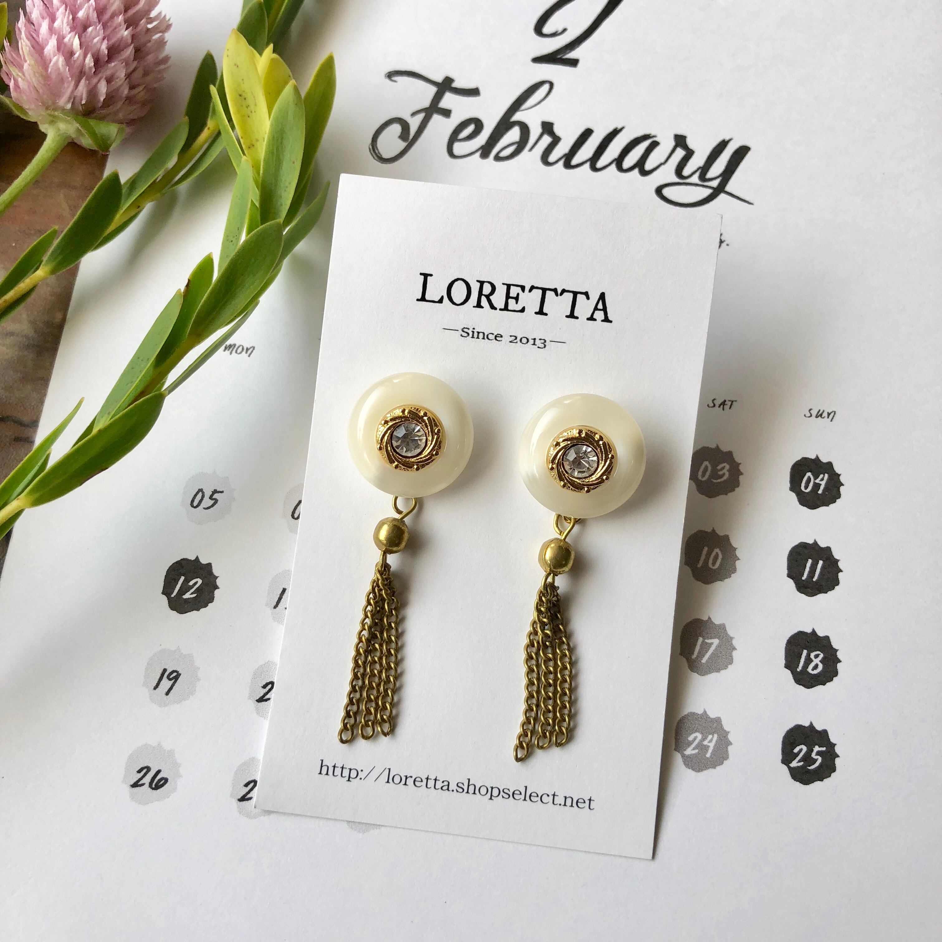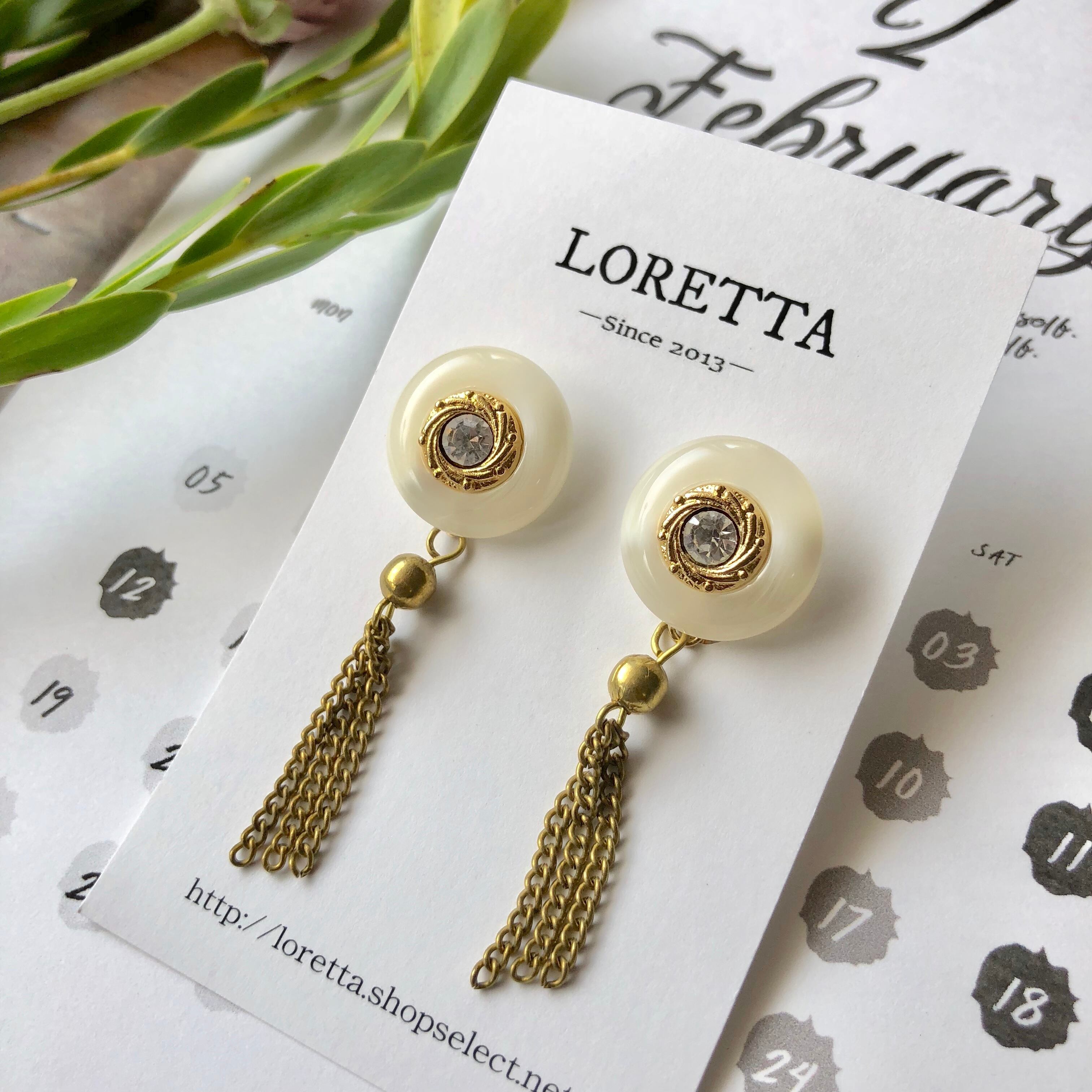 ヴィンテージボタンのタッセルチェーンイヤリング