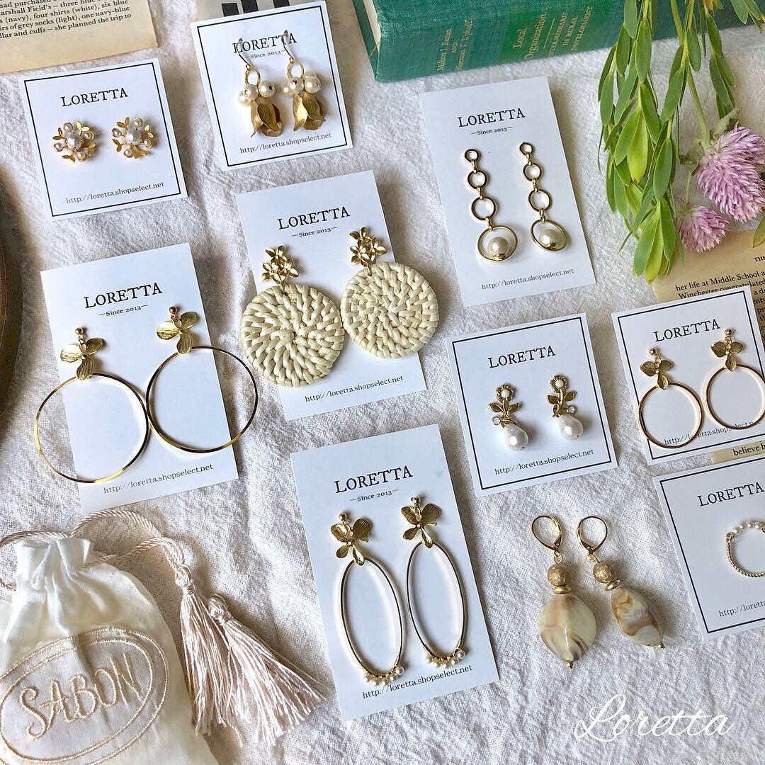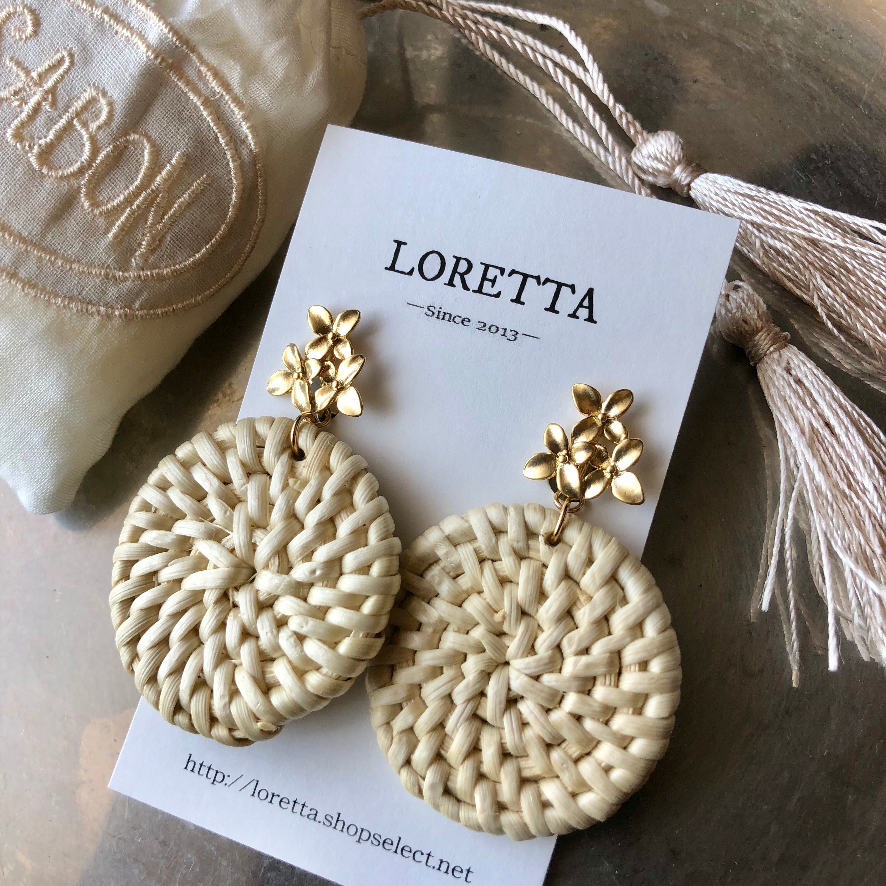 ミニブーケフラワーとラタンサークルのネジバネ式イヤリングです