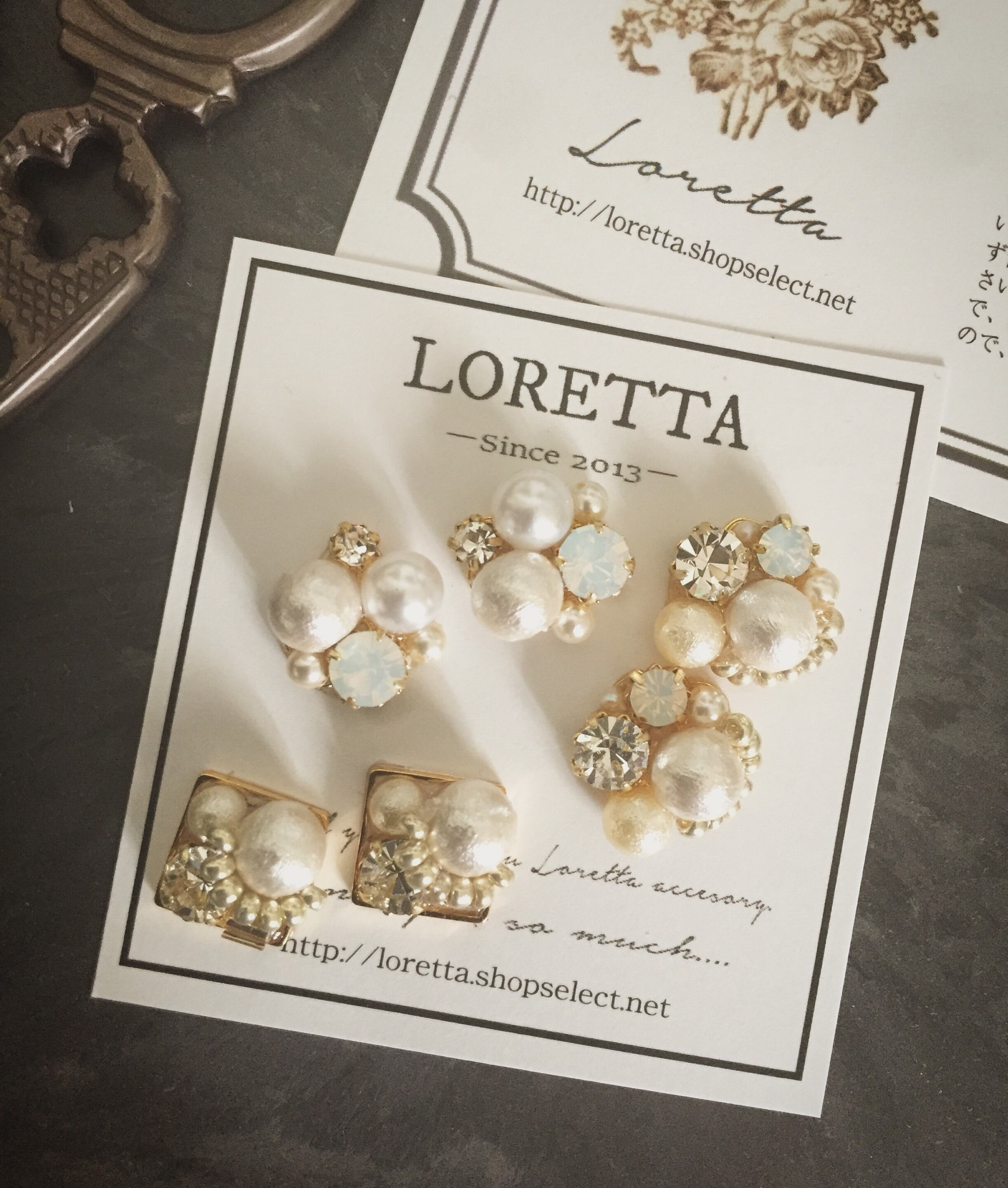 ホワイト系のコットンパールやビジュー、ビーズなど様々な種類の繊細なパーツで程よいボリュームを出しました。