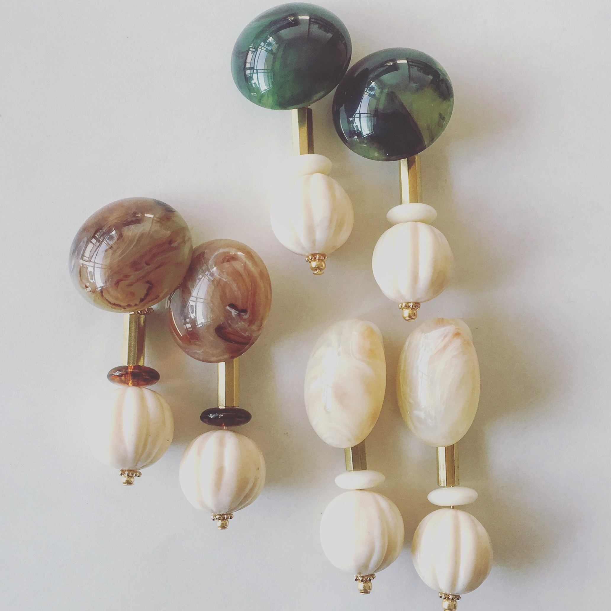 秋らしいブラウンのマーブル柄の大きなカボションが主役の