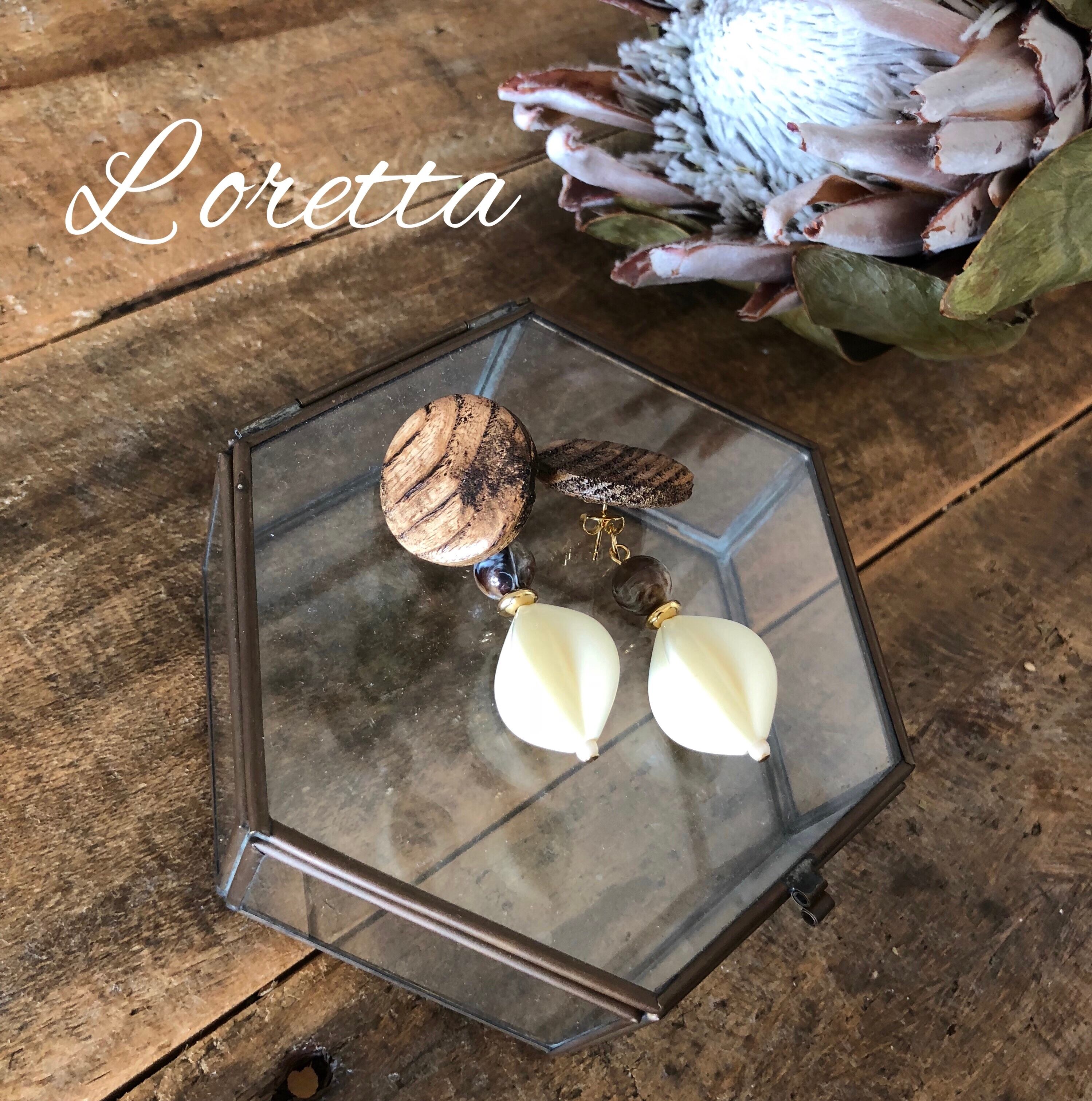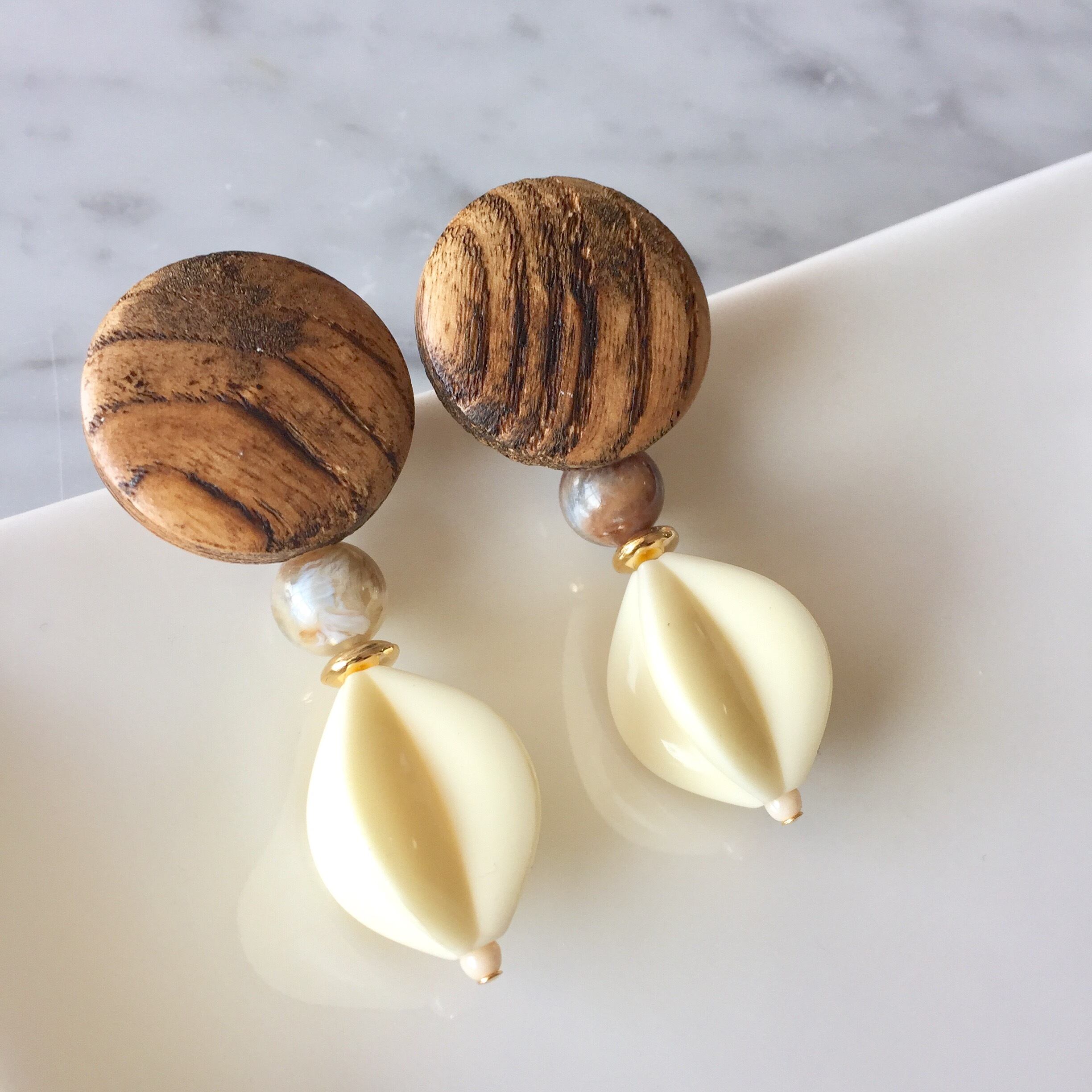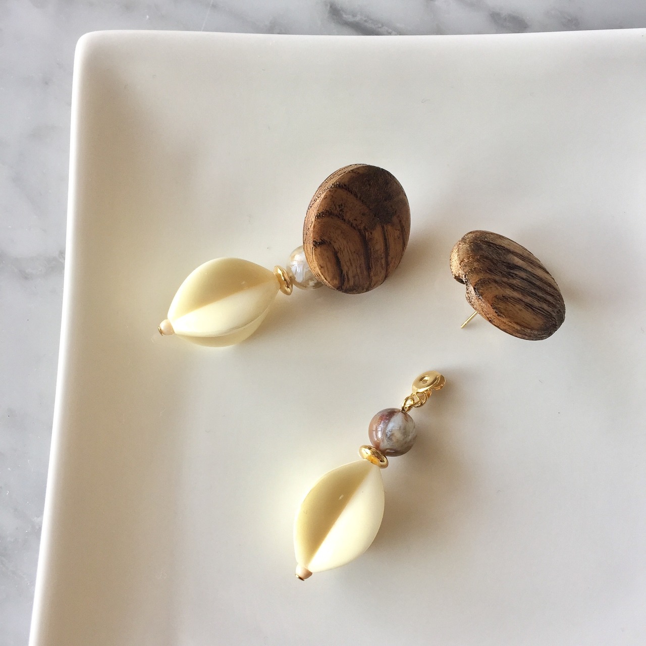 ウッドブラウンと変形アイボリーの大ぶりピアス