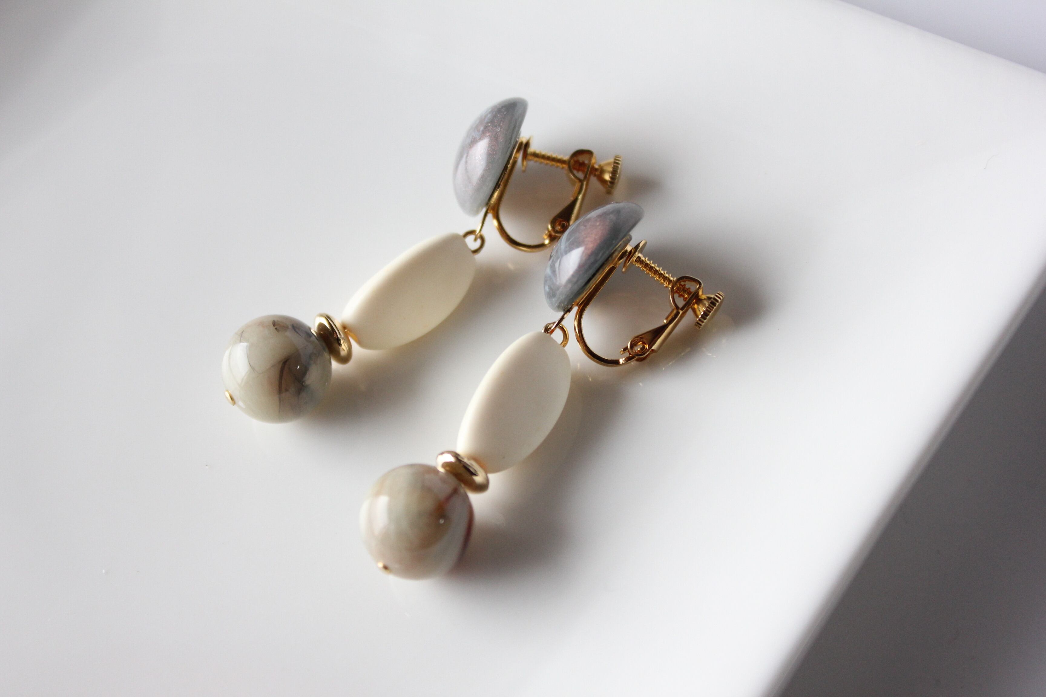 グレーマーブルとベージュマーブルビーズのイヤリング